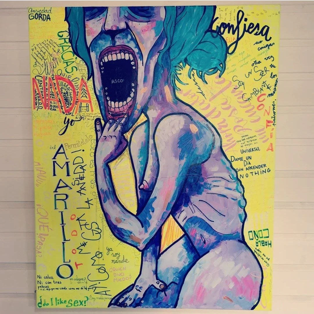Desde ahí parte este cuadro, desde el deseo de arrancarme las entrañas desde la boca, vomitar metafóricamente y que te pegue en la cara pero no violentamente.